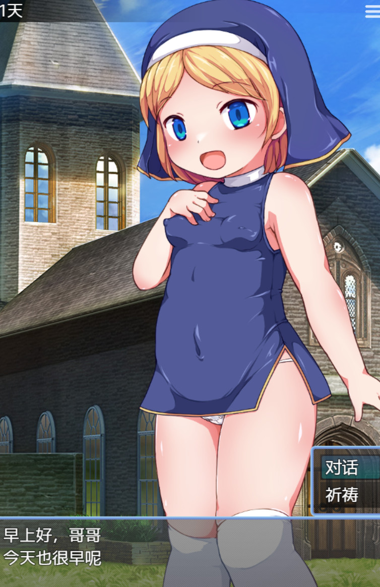 在小村庄的教堂里,有位每天早晨都会露出笑容的见习修女。 在神父不在的时候,可以和独自留守的修女亲近一点! 早晨在教堂里祈祷,晚上在修女的家里,可以享受两人独处的谈话,送礼物或者把她推到到床上。 修女对于这种新奇的感觉感到困惑,但随着时间的推移会……?