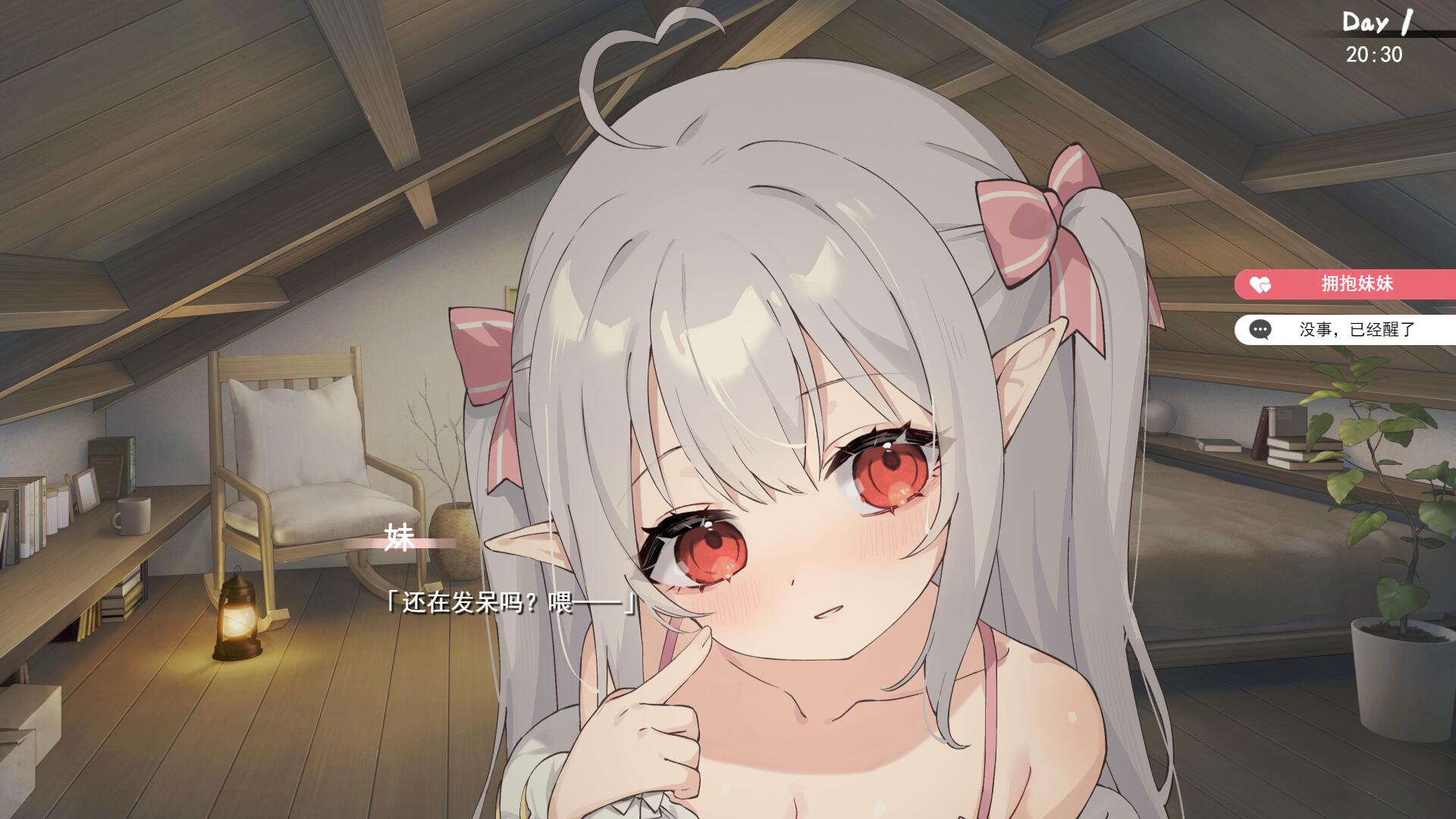 当玩家结束冒险归来时,他与妹妹度过了宝贵的时光。他用收集到的食材为妹妹做饭,谈论他的冒险经历,和他一起玩游戏,和他一起睡觉。作为一款养成游戏,玩家可以近距离观察妹妹的成长,感受作为哥哥的成就感。随着你和妹妹关系的加深,更多的互动将会被解锁!