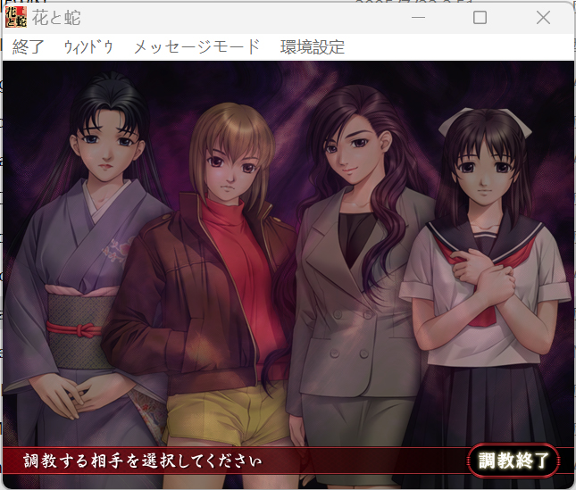 (玩法主要就是通过在各个房间里溜达来搜集调教道具及触发事件,前几天每天触发4个事件即会进入下一天;最终章要获得结局需要角色的三系调教值拉满,最后公开调教的三个选项会触发不同的结局,每个角色有4个结局,建议通关喜欢角色的一个结局后就可以用cg存档看看cg了)