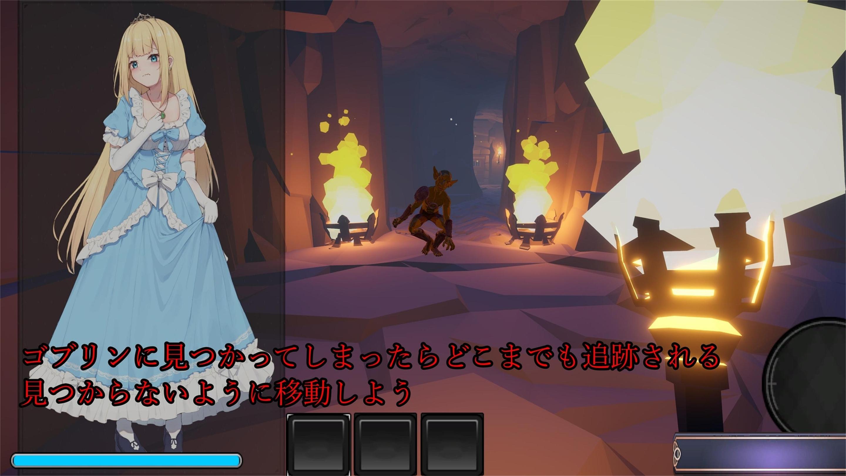 故事情节: 艾露西亚作为王位继承者,前往边境防卫视察途中,遭到哥布林群袭击,被带入昏暗的洞穴。意识到等待援助将会为时已晚,艾露西亚决定从哥布林的巢穴中独自逃脱。