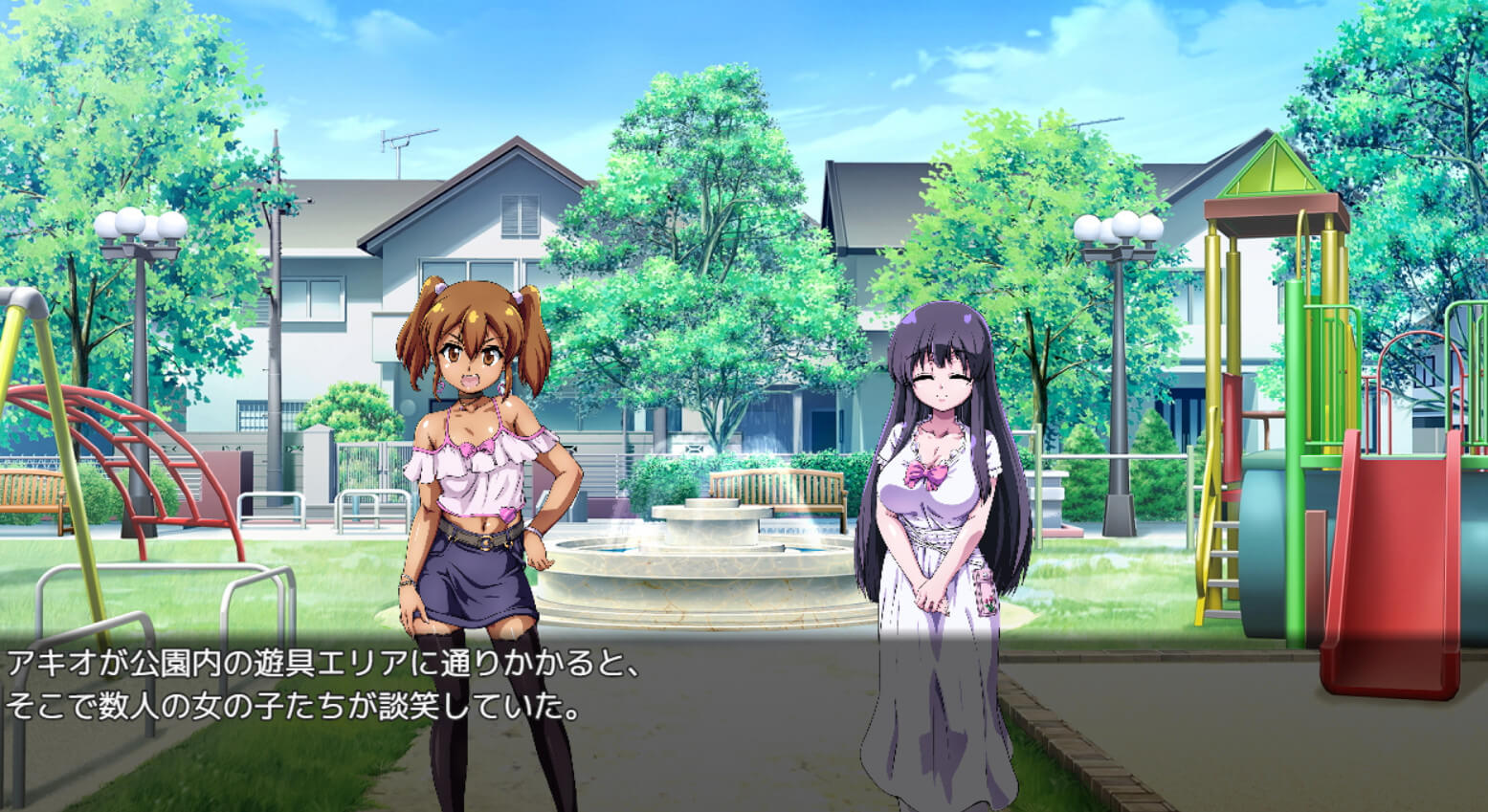 在路上看到了可爱的小女孩们在公园里玩,