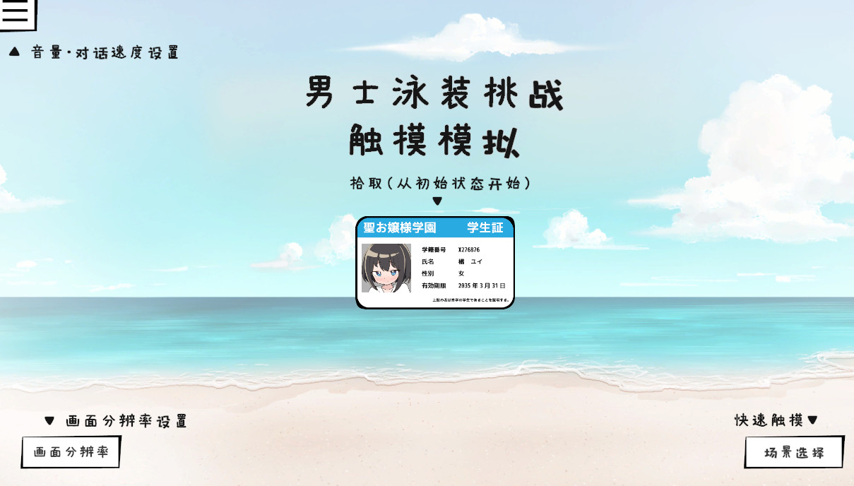 本作是一款可对身着男性泳装挑战中的女孩进行触摸互动的模拟游戏。