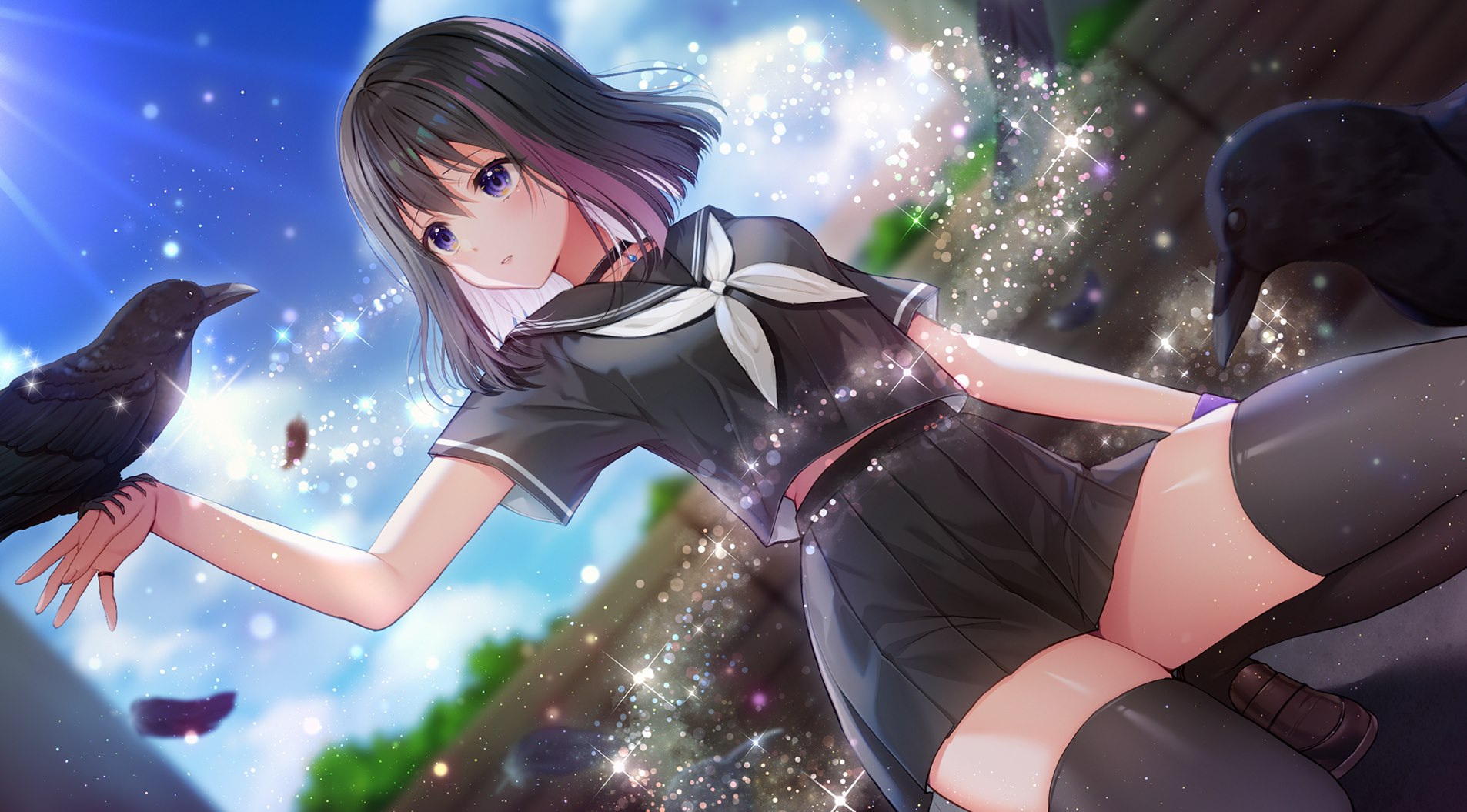 少女犹如祈愿般,将手伸向天空。