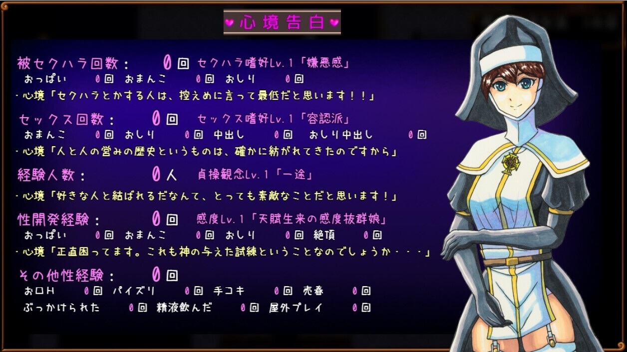 ・修道院……忏悔室(性骚扰・前戏・正戏)、全裸徘徊
