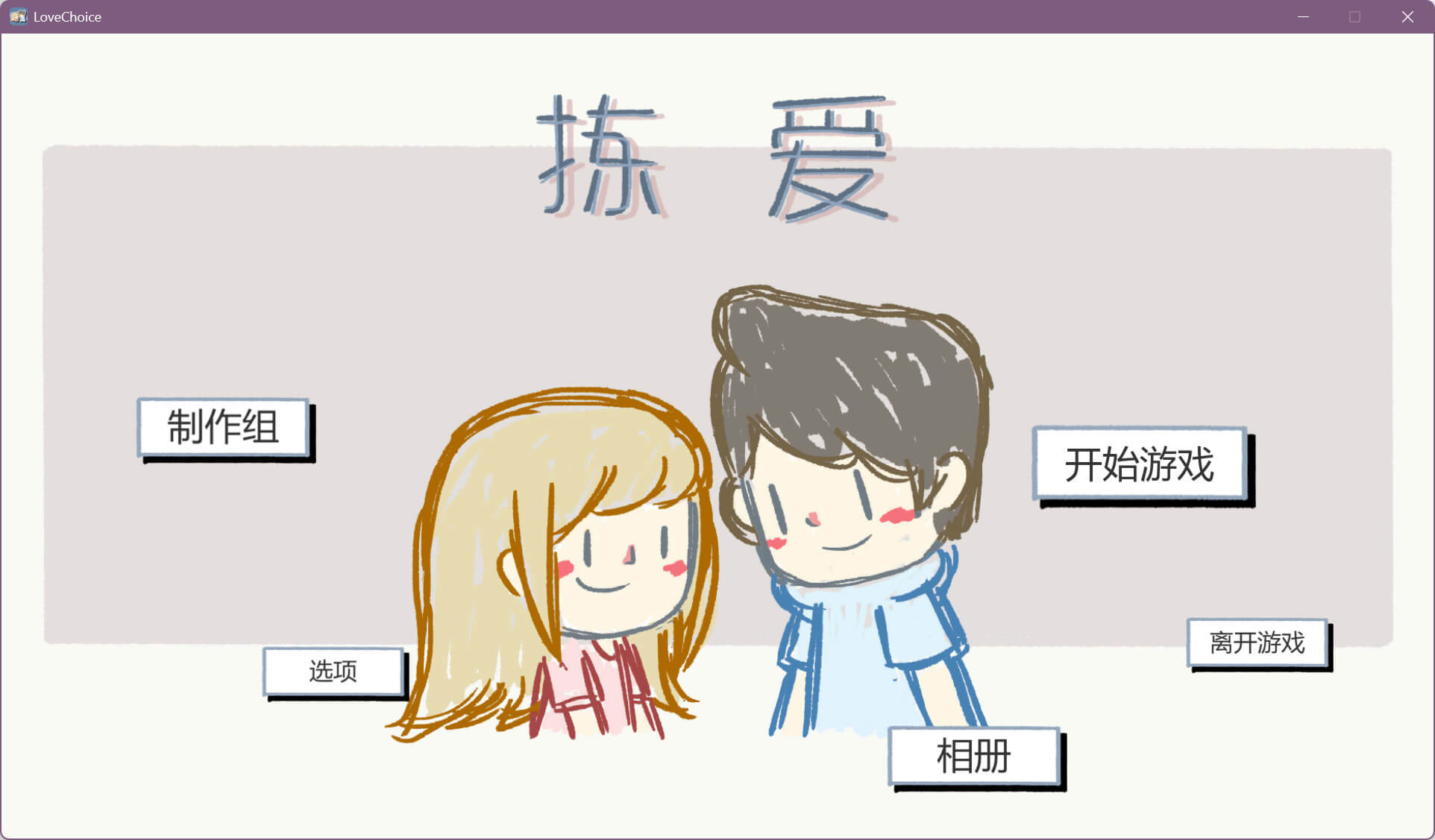 《拣爱》是一款谈论爱的游戏。比起是否好玩,我们更在意一款游戏是否有意思。希望通过我们设计的游戏和故事,玩家能够感受爱,学会爱他人和爱人的方法。希望通过游玩这个游戏,你能够有所感悟,有所得着。