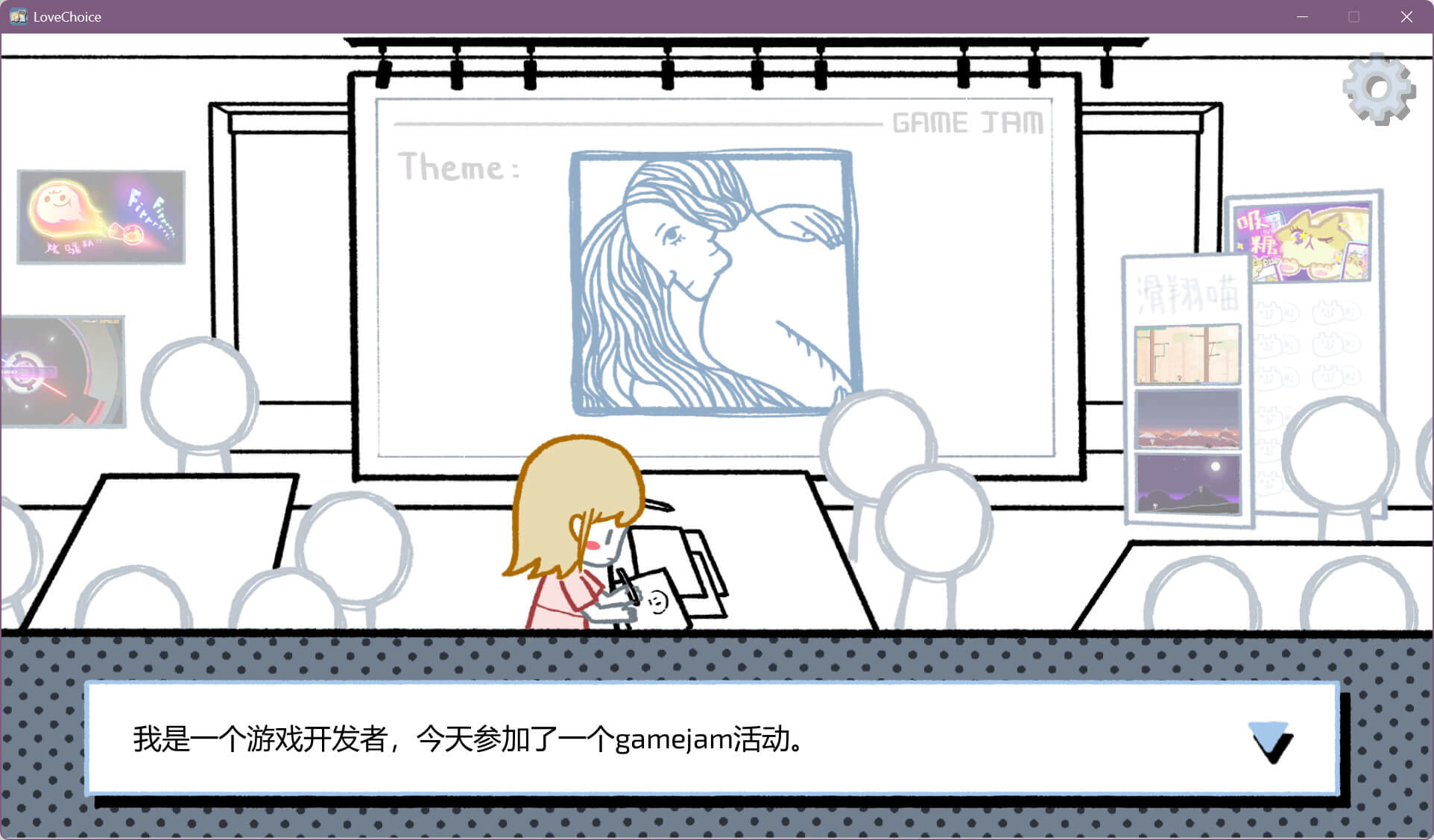 《拣爱》是一款以日式AVG选择玩法为核心的游戏。拣,有选择之意。我们在设计的时候十分在意让每一个场景,每一个选择都合理而有其自己的意义。力求让玩家能够在该游戏中做出有意义,且真正能影响结局的选择。