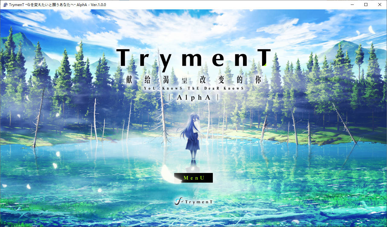 《TrymenT—献给渴望改变的你—》是由日本美少女游戏品牌TrymenT所製作的一款全年龄向视觉小说作品。将会分别推出AlphA篇与OmegA篇。本作拥有令人一见倾心的顶级场景绘画,以及拥有馀音绕樑般魔力的优秀配乐,并讲述了一个在社会遭遇挫折后的人们寻求重塑自我的故事。