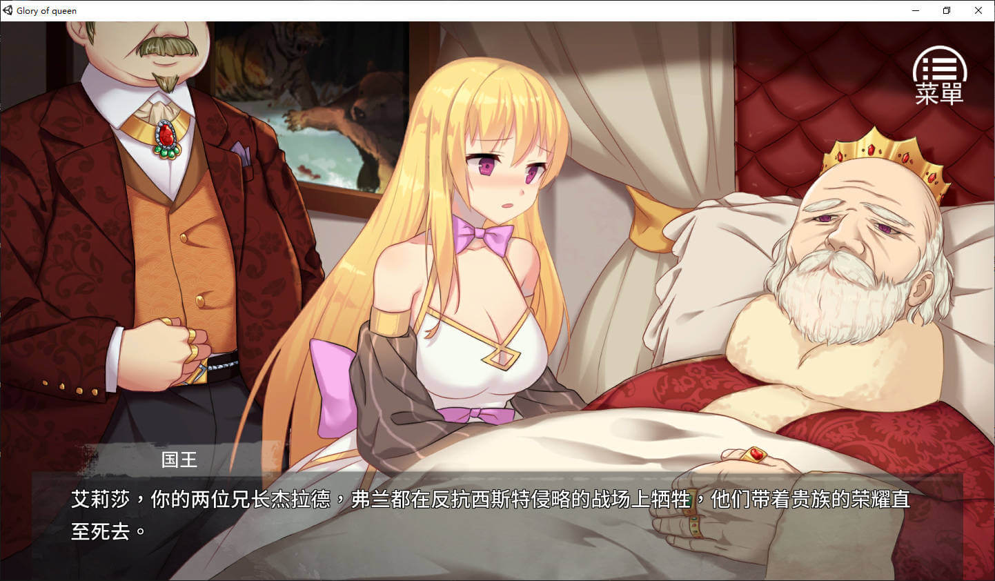 因为两个王子也战死了,临走前老国王只能把王位继承给自己的女儿公主[艾莉莎]。