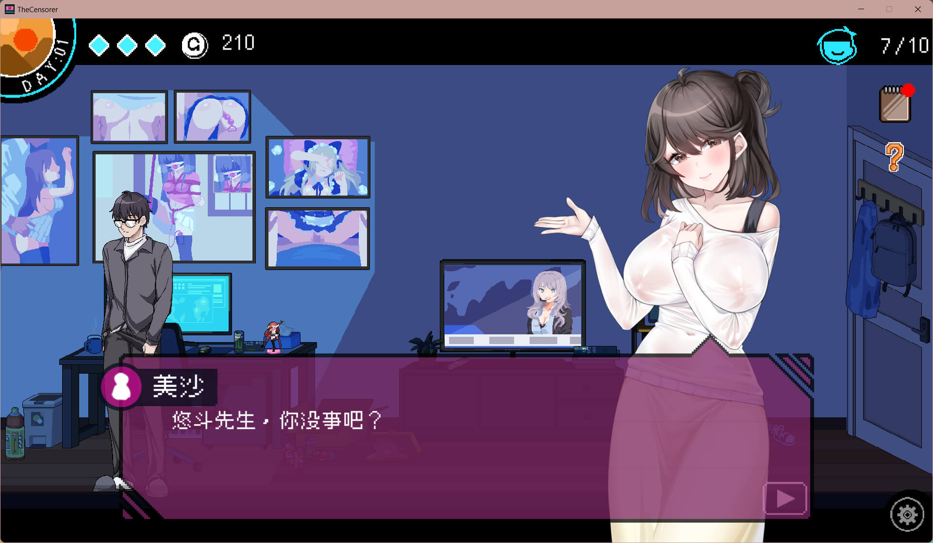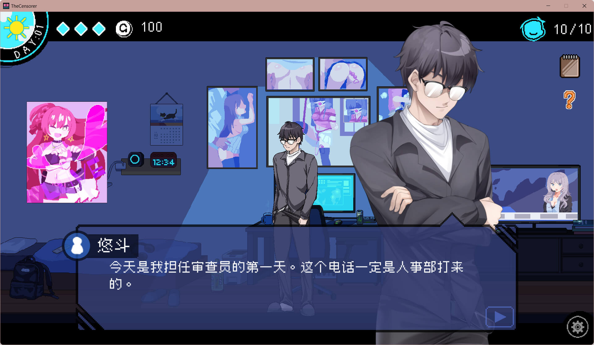 虽然你希望能一直在家里懒散地生活,但为了生存,还是必须做些工作。目前,你正在被招募为Facebook的审查员。“啊,审查员啊。为了钱。”这个职位似乎可以在家工作,于是你申请并很快就被录取了。从此,你每天都得按时完成审查工作。