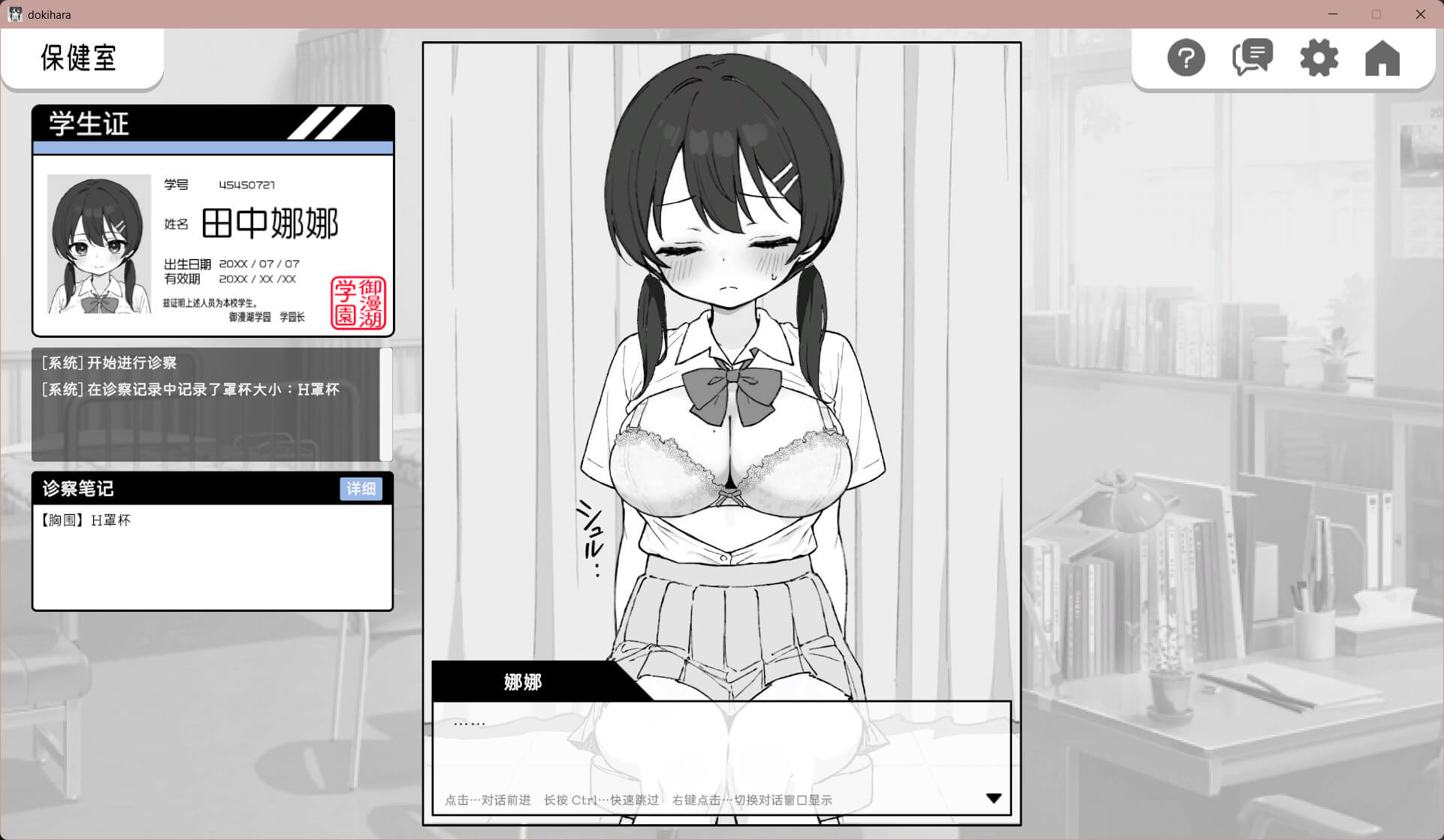 以“健康检查”为名,可以对端庄而认真的巨乳女孩进行全方位触诊的羞耻系触摸游戏。
