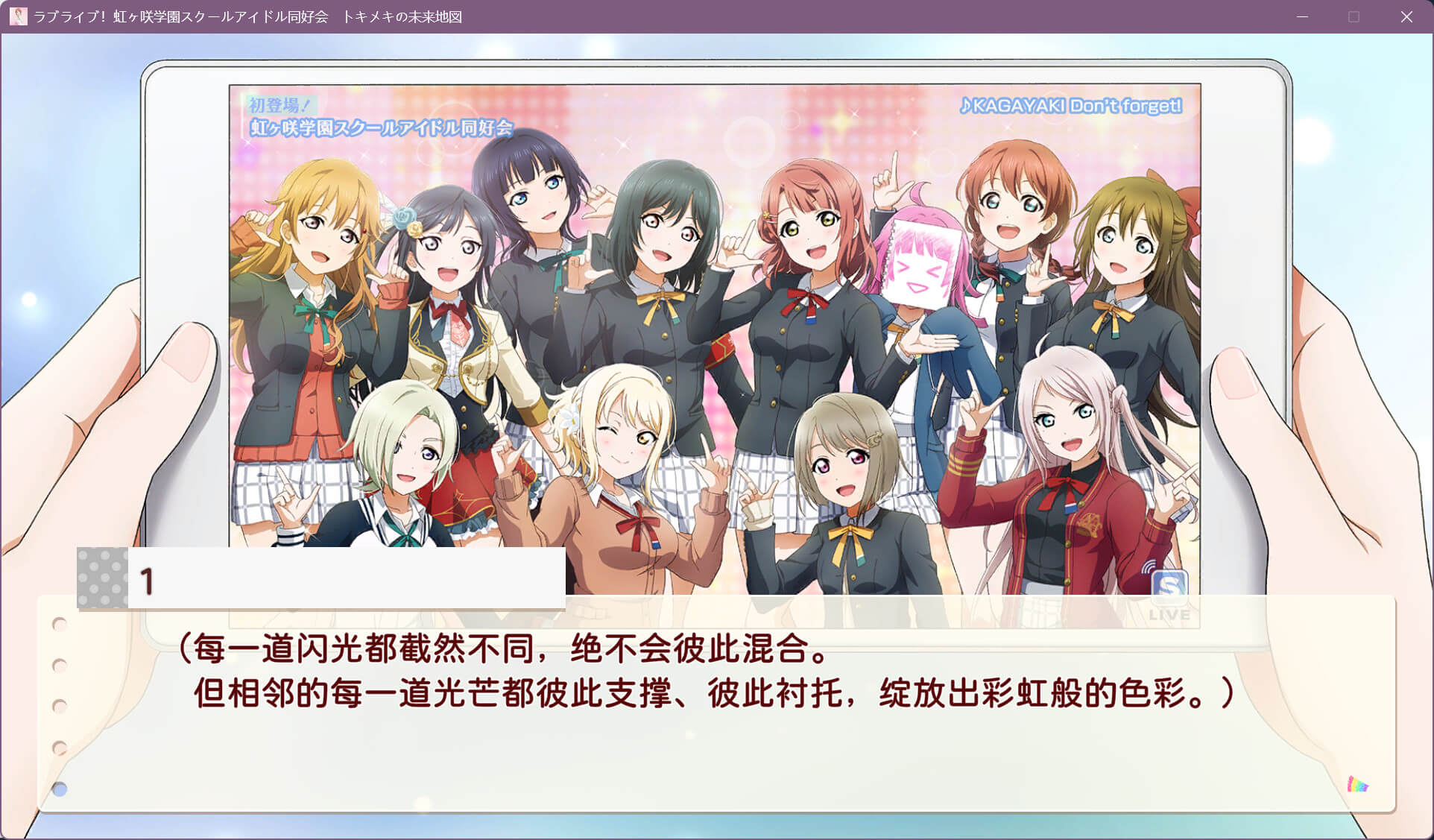 你与虹咲学园学园偶像同好会的 12 位成员一同度过了充满 心动(TOKIMEKI) 的每一天。
