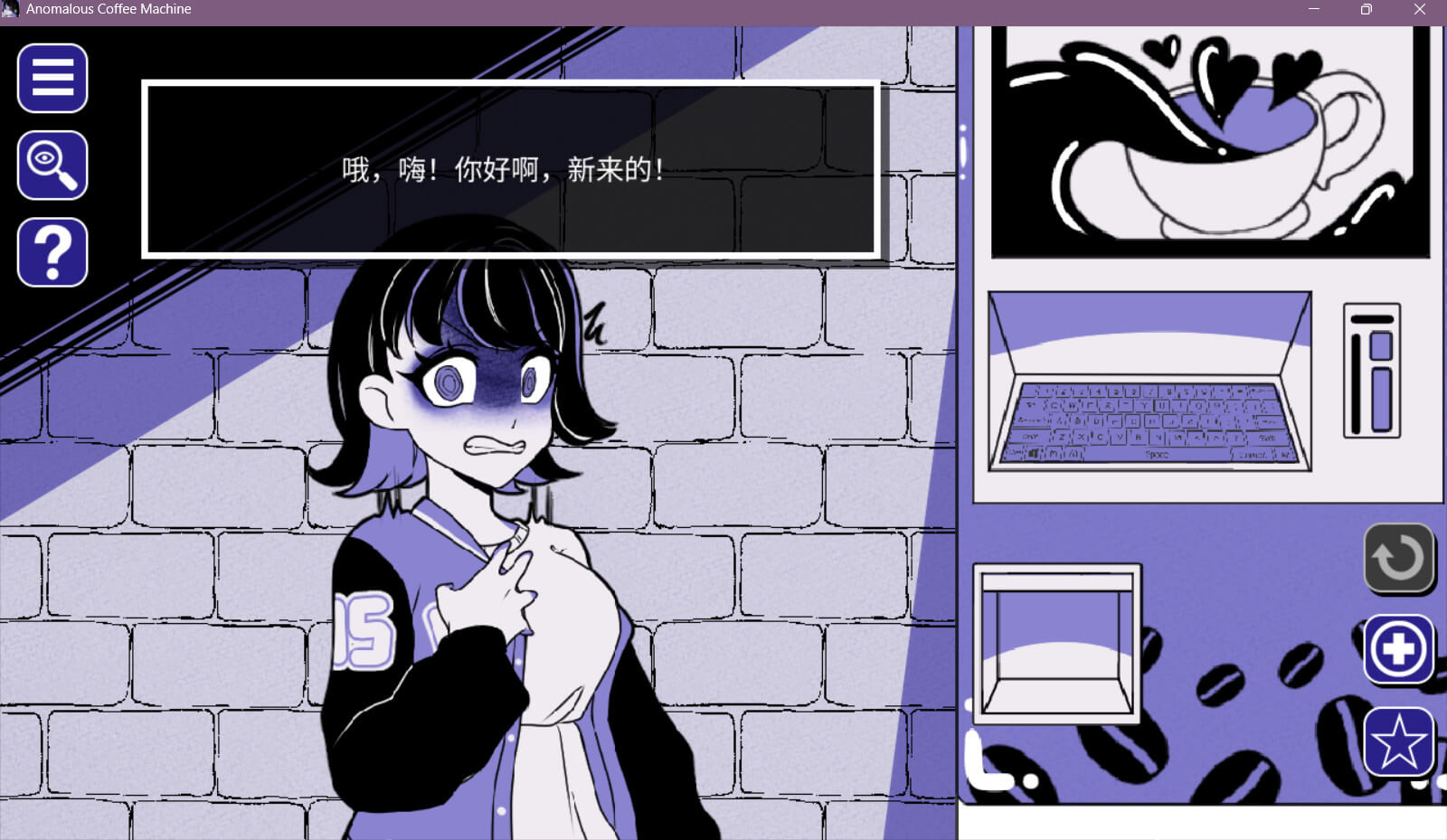 Anomalous Coffee Machine 是一款独特的视觉小说互动模拟风格的游戏。你将邂逅一位神秘的少女,她出于某种未知的原因,请求你使用并探索她那台神秘而似乎带有异常性质的咖啡贩卖机!