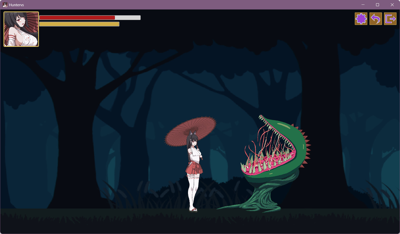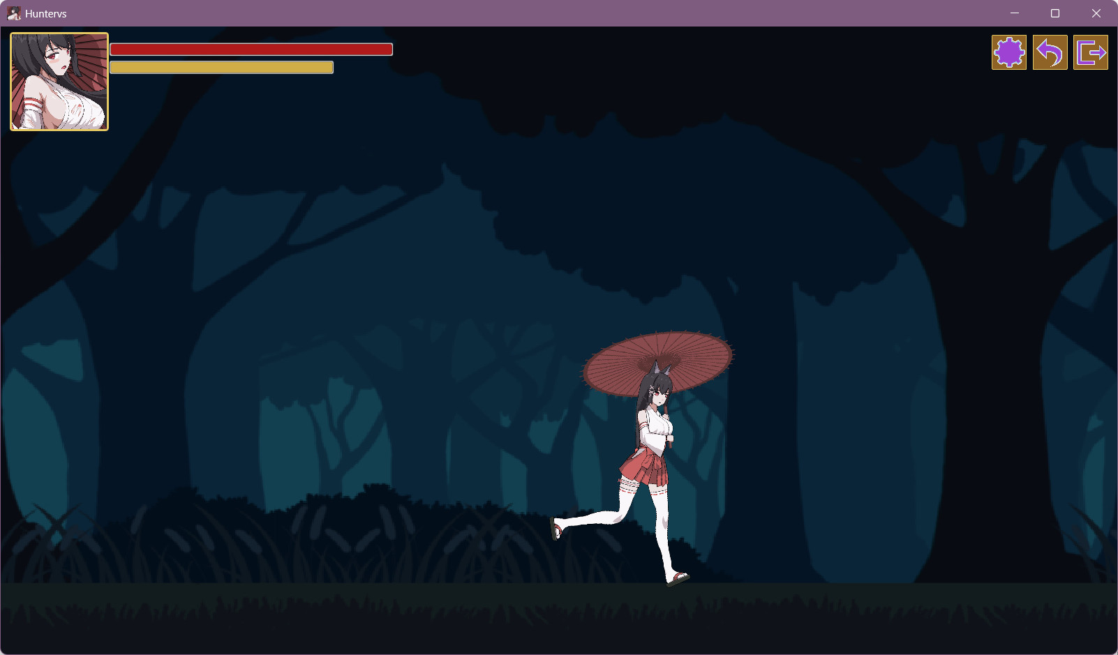 在横版像素动作游戏中,挥舞红伞斩除妖魔!