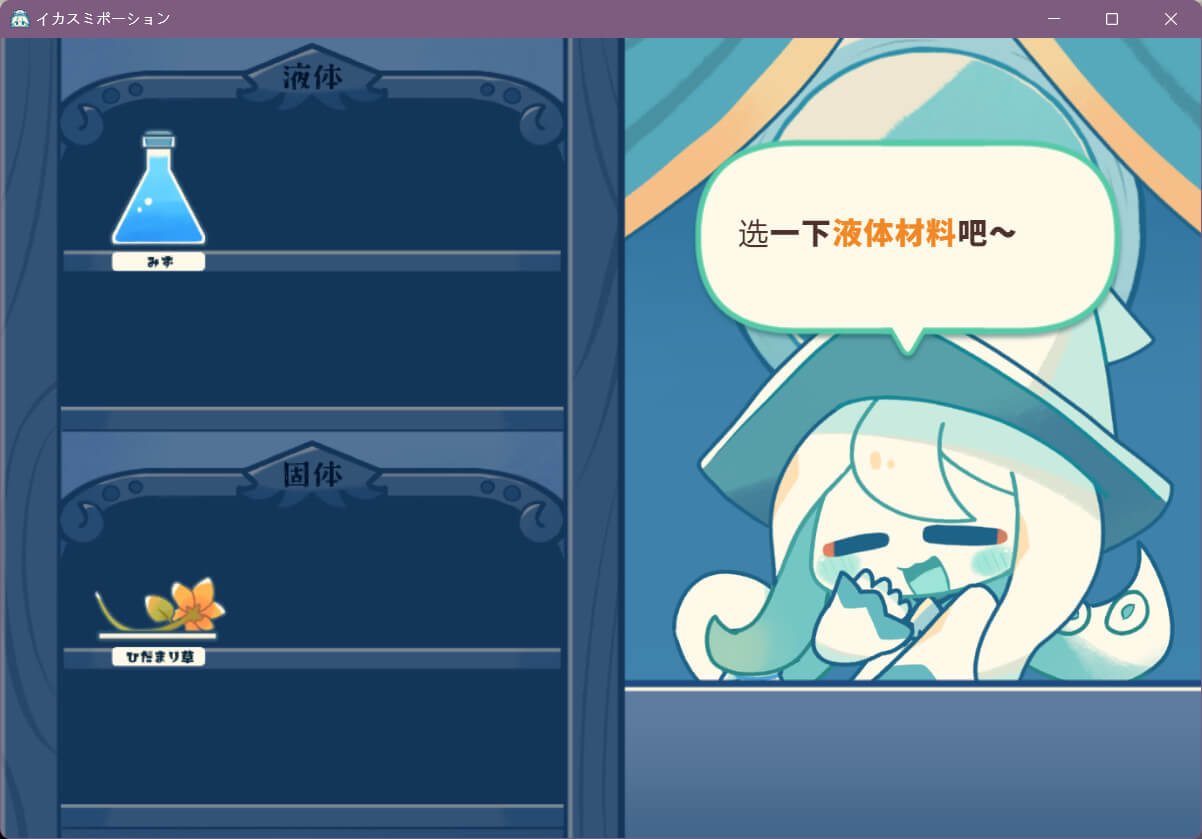 你将和可疑的药水店老板——乌贼·苏米米(スミミ)一起制作药水。