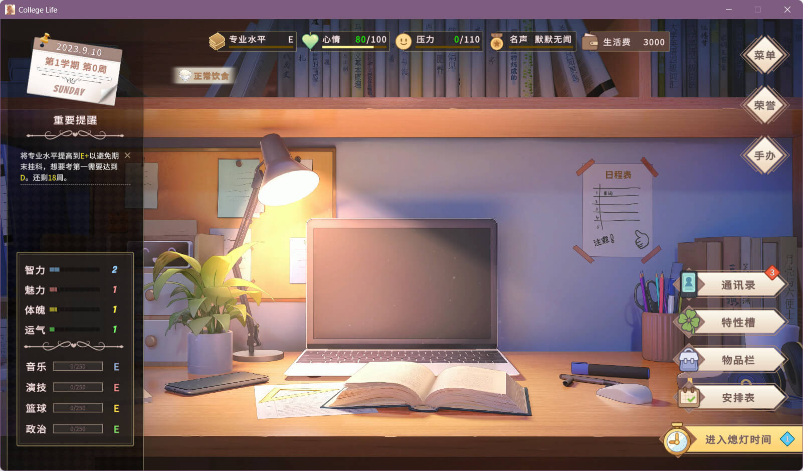 欢迎来到大学生活!《我的时光:大学日记》是一款以大学生活为背景的模拟养成游戏。