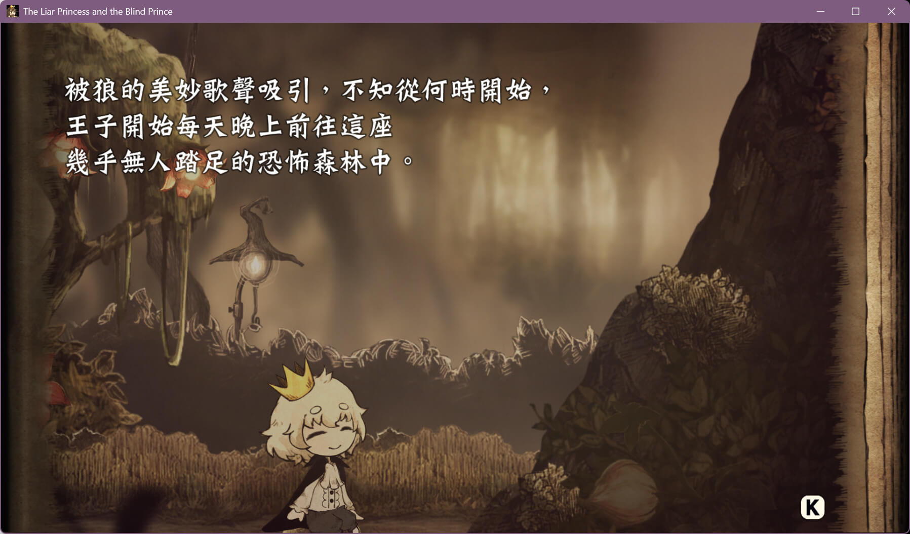 玩家需要在狼与公主两种形态之间切换,利用不同的能力,引导失明的王子前往每个关卡的终点。《说谎公主与盲眼王子》拥有如绘本般精美的世界,所有背景、角色以及 UI 元素都采用手绘风格呈现。
