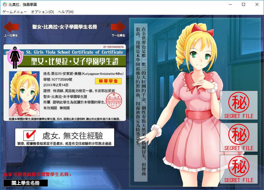 而本學園除了前述條件外,也十分嚴苛地審核入學學生的思想、信念與肉體。