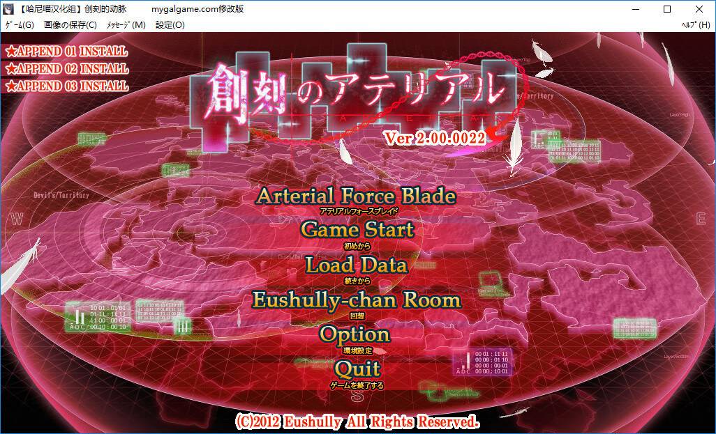 备注:已打官方APPEND01、APPEND02、APPEND03和v2.0补丁;已打【哈尼喵汉化组】《創刻のアテリアル》全线汉化补丁;已使用弟弟的修改补丁
