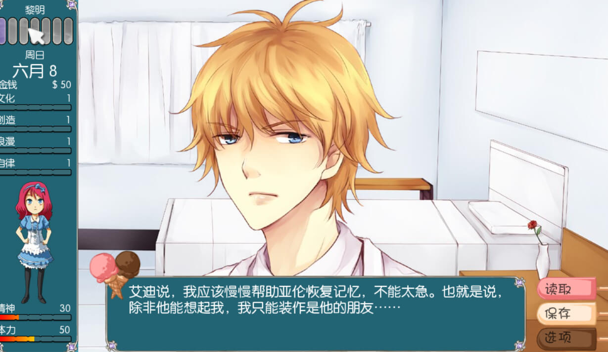 特色详细的生活模拟游戏。使用地图探索城镇,找到每个位置可以进行的操作和每周的时间。