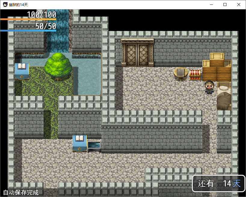 一款日系解谜冒险游戏,游戏的主要元素是逃脱,玩家需要在14天的时间里,不断的提升装备、能力,对抗敌人,来进行逃脱。