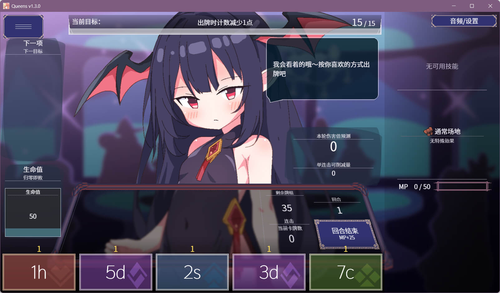 每回合随机发牌,按照一定规则出牌,如果能完成女主角提出的所有“目标”,即可获胜。