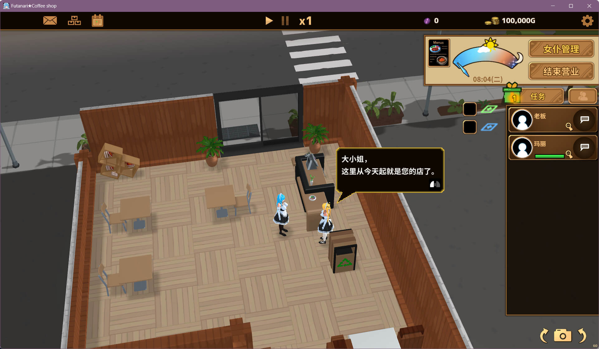 作为一位出生在富裕家庭的美少女(扶她),你出于兴趣开了一家咖啡厅。 你将雇佣许多美少女作为女仆,一边经营咖啡厅,一边与这些美少女们加深关系♪