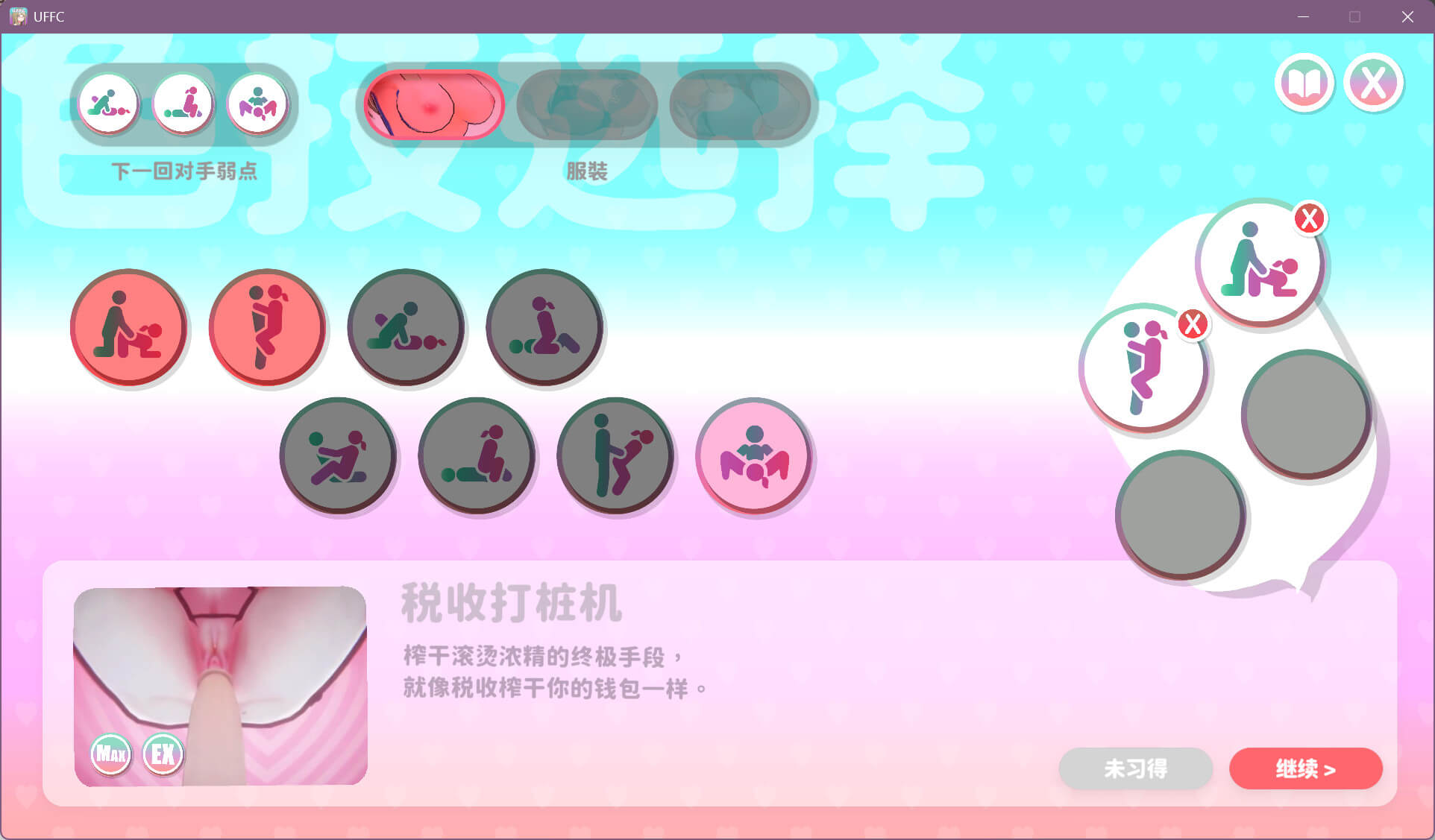 在这场扣人心弦、令人热血沸腾的冒险中,你将探索特朗姆在「天下第一色色武道会」里从本地比赛到世界杯等不同的联赛中离谱且淫秽的一面,并以她的性高潮性技制服各路好汉。每一次激情胜利,你都能获得令人垂涎的关税,并用它来解锁特朗姆大人更多令人硬爆的能力,以确保她在赛事中占据高位!