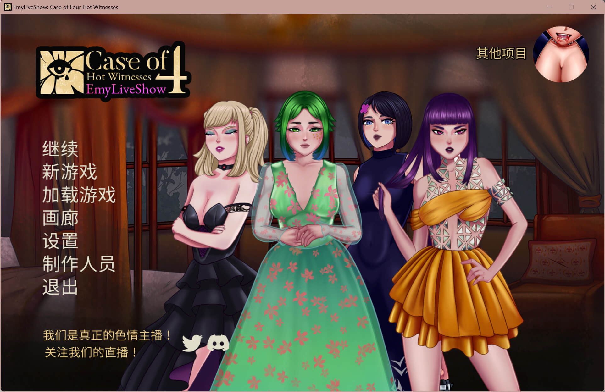 艾米直播秀:四位性感证人的案件是 (EmyLiveShow: Case of Four Hot Witnesses)一款带有骰子技能检定机制的情色视觉小说。